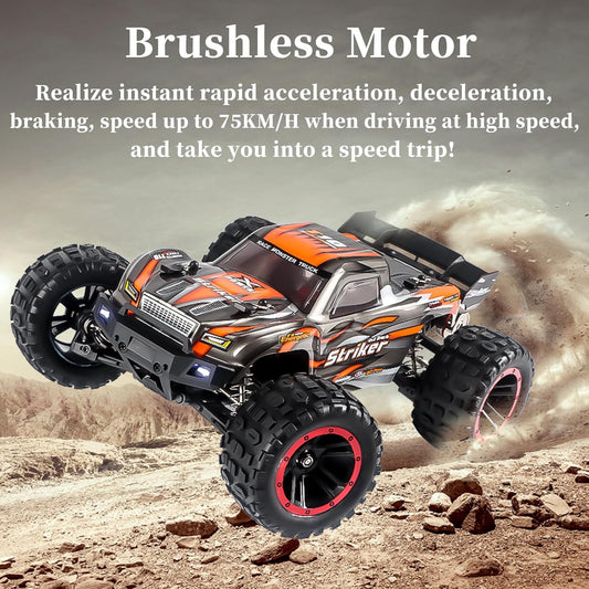 Brushless RC Cars, 75KM/H High Speed Remote Control Car, 4WD 1:14 Scale All Terrain off Road Monster Truck, 2.4 Ghz Racing Car Waterproof 2 Battery 50 Min Car Toy for Kids and Adults
